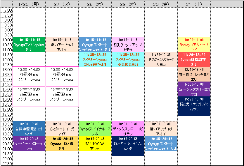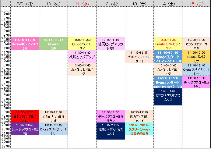 レッスンスケジュール