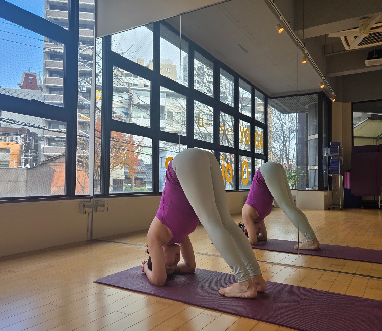 最終的に“正しいダウンドックの取り組み方”を学び、身体の軸である背骨の伸びを味わっていきます。